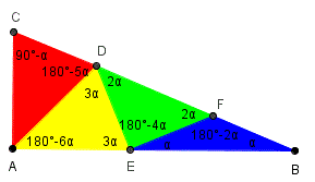 l'ampiezza degli angoli alla base del triangolo AED saranno 3α e l'angolo al vertice (180° − 6α), l'ampiezza degli angoli alla base del