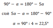 triangolo ADC saranno (180° − 5α). Ora avendo indicato con alfa l'angolo ABC ed essendo il triangolo ABC retto in A l'angolo ACB ha ampiezza