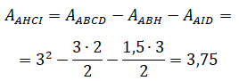 Possiamo determinare l'area del quadrilatero colorato togliendo dall'area del quadrato ABCD le aree dei triangolo ABH e AID.