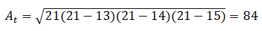 Dove h è l'altezza del triangolo. Conoscendo le lunghezze dei lati del triangolo (13, 14 e 15) possiamo determinare la sua area applicando
