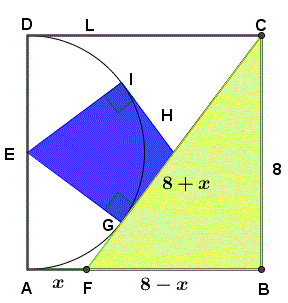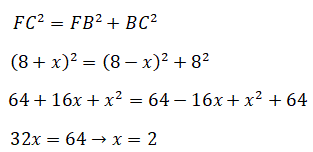 S e indichiamo AF = x ne segue che FB = 8 - x e CF = 8 + x.