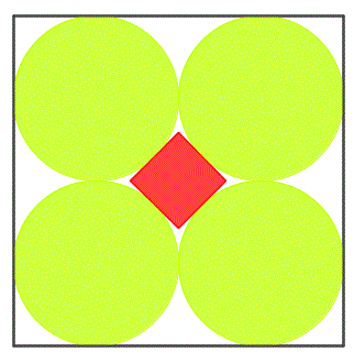 Quesito n° 40: In un quadrato sono inscritti quattro cerchi uguali di raggio r e tangenti tra loro. Inoltre, un piccolo quadrrato è tangente ai quattro cerchi come si vede in figura. Trova l'area del piccolo quadrato in funzione di r.