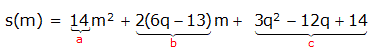 s = 14m2 + 2m(6q - 13) + 3q2 - 12q + 14
