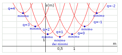 Ma questo minimo è una funzione quadratica del parametro q; certo, perchè per ogni valore di q possiamo tracciare una parabola s(m) e ogni parabola avrà il suo minimo.
