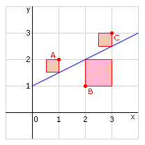 A = (1, 2), B = (2, 1), C = (3, 3)