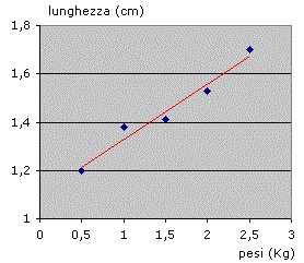 Una questione che spesso si pone in statistica è capire se esista una relazione tra due serie di dati o, diremo, una correlazione tra dati. Una volta accertato che tale relazione esiste, il passo successivo consiste nel determinare il modello matematico che meglio rappresenta tale relazione. In questa introduzione di carattere elementare alla statistica, verrà affrontato solo il caso del modello lineare. Consideriamo ad esempio questo esperimento. Ad una molla vengono applicati vari pesi e, per ogni peso, si registra la lunghezza della molla.