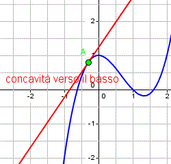 Nel punto di flesso si verifica un cambio di concavità e la retta tangente nel punto (x0; f(x0)) attraversa il grafico.