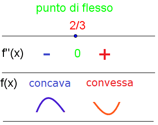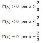 Nell'intervallo (2/3, +∞) è f"(x)>0 e la curva è convessa, nell'intervallo (-∞, 2/3) è f"(x)<0 e la curva è concava, per x=2/3 è f"(x)=0 e f"(x) cambia la concavità a cavallo di x=2/3 e quindi x=2/3 è un punto di flesso.