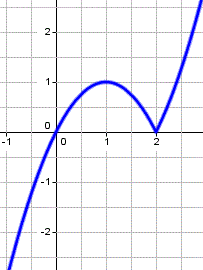 Da un punto di vista geometrico, il coefficiente angolare della tangente al grafico cresce infinitamente in un intorno (sinistro o destro) del punto di cuspide e decresce infinitamente nell'altro intorno (destro o sinistro). Anche i punti cuspidali possono essere punti di massimo o di minimo relativo per la funzione che si possono rilevare con lo studio della crescenza e decrescenza della funzione a sinistra e a destra del punto cuspidale. Nel nostro caso il grafico presenta una decrescenza a sinistra di x0=0 e una crescenza a destra e quindi x0=0 ò anche un punto di minimo relativo per la funzione. Ecco il grafico della funzione.