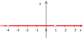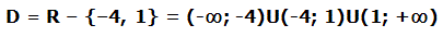 La rappresentazione grafica del dominio sull'asse delle x coincide con l'asse tranne nei punti x=-4 e x=1 perchè in quei due punti ha un "buco".