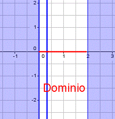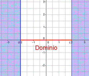 Il dominio della funzione è costituito da un intervallo chiuso limitato con i valori compresi tra -2 e 2 (estremi inclusi) e la sua rappresentazione grafica sull'asse delle x corrisponde al segmento avente per estremi (-2; 0) e (2; 0).