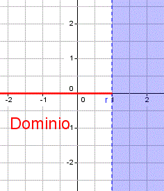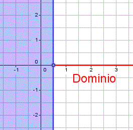 e la rappresentazione grafica del dominio sull'asse delle x corrisponde a una semiretta privata del suo punto d'origine (x>1/2 ∧ y=0):