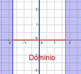 Analogamente, anche il grafico della funzione è tutto racchiuso nella zona di piano limitato dalle rette x = -2 e x = 2. In questo caso possiamo colorare le regioni di piano dove sicuramente la funzione non è definita e quindi non esiste il grafico della funzione.