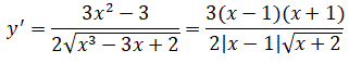 Osserviamo che la derivata prima non è definita per x=-2 e x=1 e risulta: