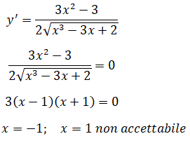 Determiniamo i possibili punti stazionari uguagliando a zero la derivata prima: