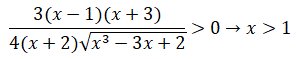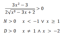 Risolvendo la disequazione si ottiene:x3-3x+2 > 0 → x ≠ 1 ∧ x > -2