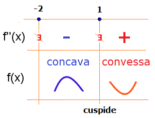 e costruiamo lo schema del segno della derivata seconda: