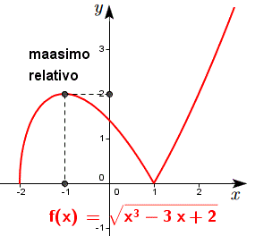 Essendo una funzione irrazionale di indice pari il suo dominio è costituito da ogni valore di x appartenente all'insieme dei numeri reali tali da rendere il radicando positivo o nullo e nel nostro caso bisogna porre x3-3x+2≥0 cioèx3-3x+2 ≥ 0 → (x+2)(x-1)2 ≥ 0 → x ≥ -2