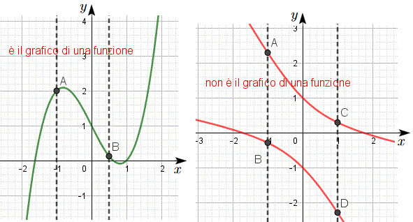Possiamo facilmente riconoscere se una curva nel piano cartesiano rappresenti una funzione con il test della retta verticale: se ogni retta verticale interseca la curva in un solo punto allora la curva rappresenta il grafico di una funzione se invece una retta interseca la curva in due o più punti distinti allora la curva non rappresenta una funzione.